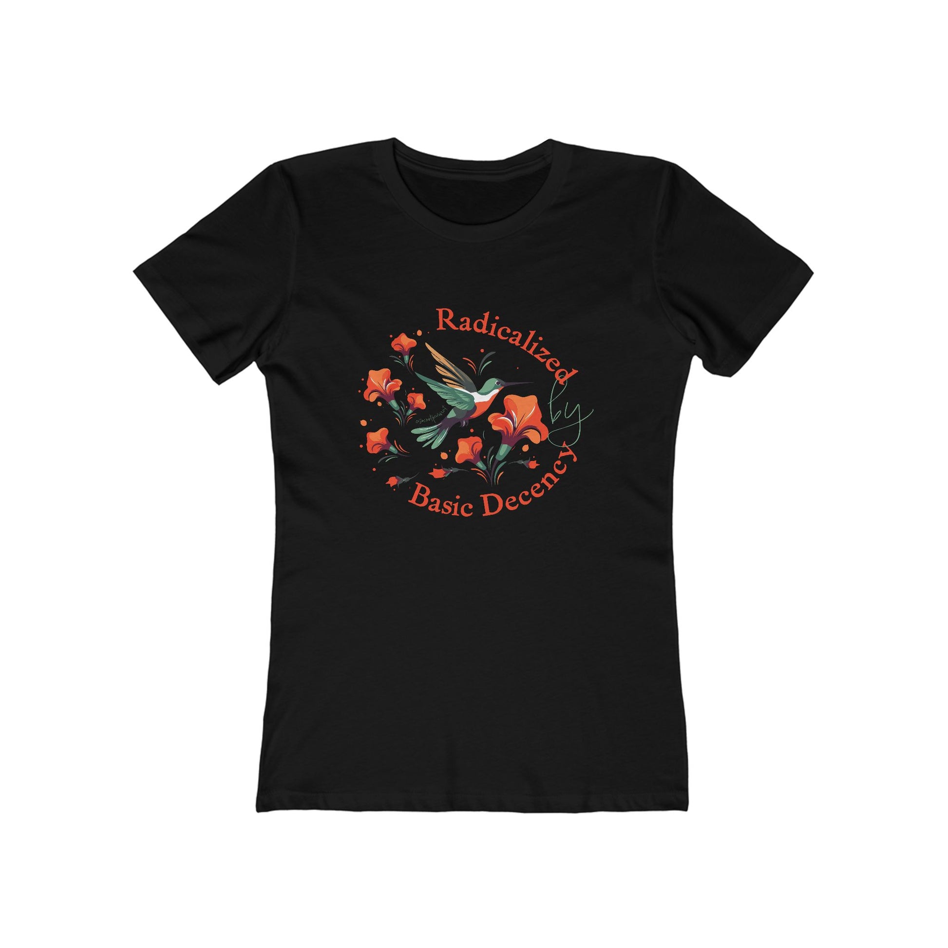 Radicalized by Basic Decency — Progressive Political Tee for Women — Activist Statement Tee